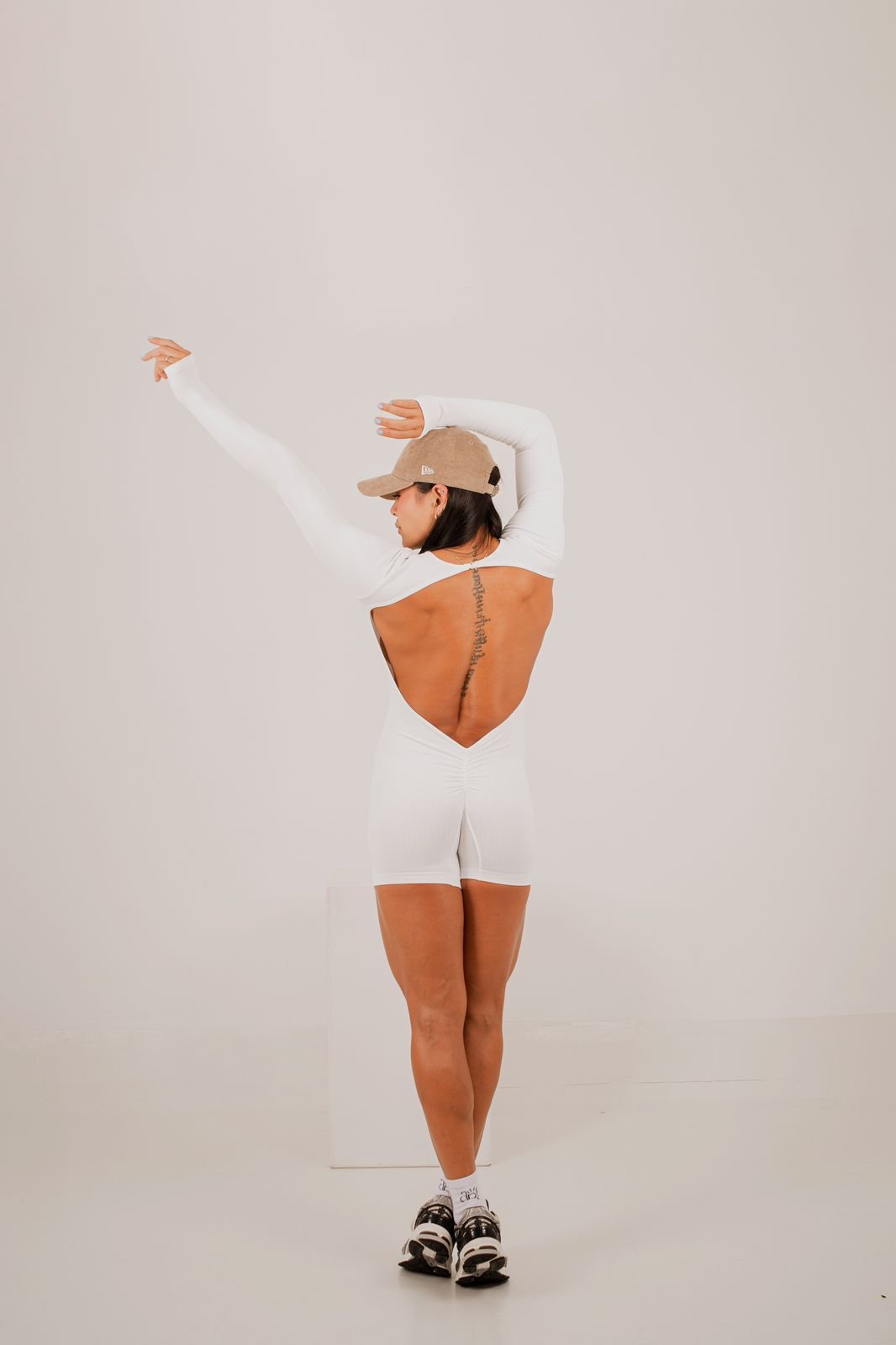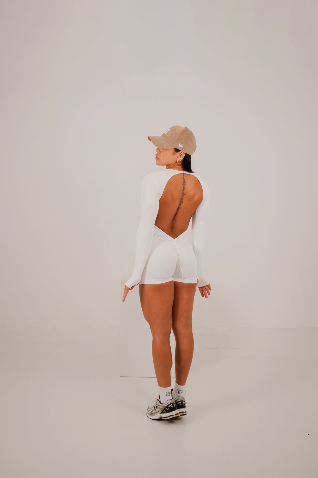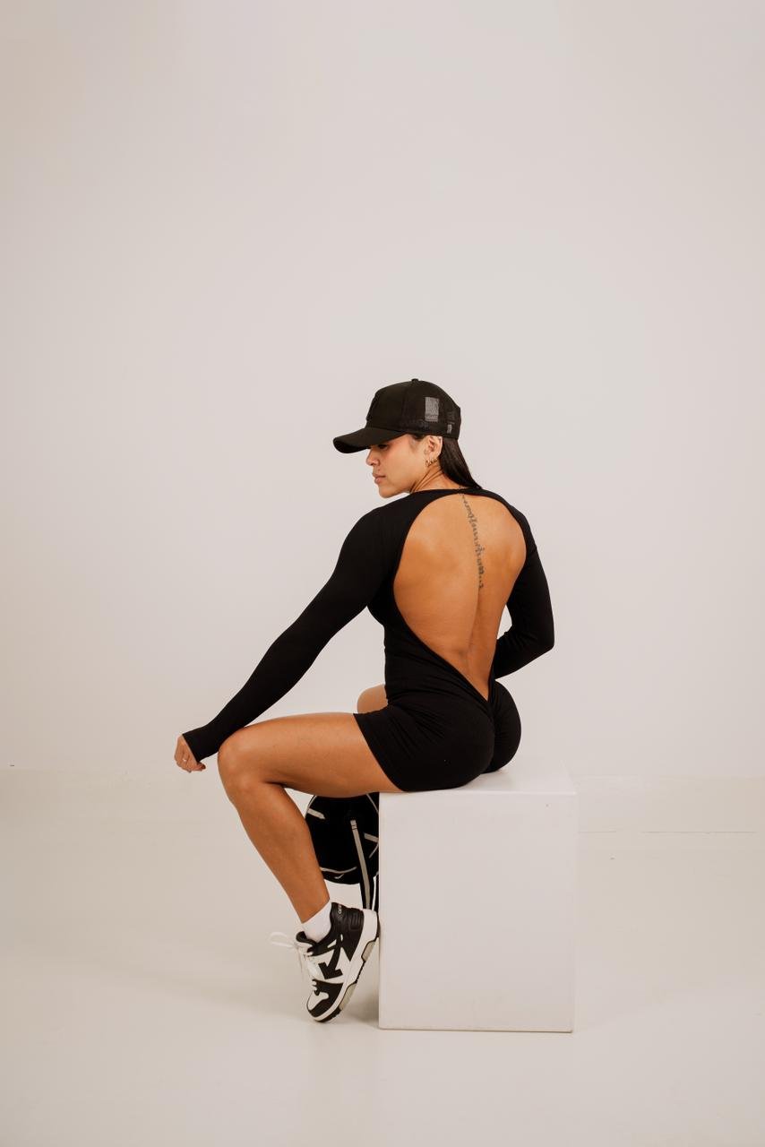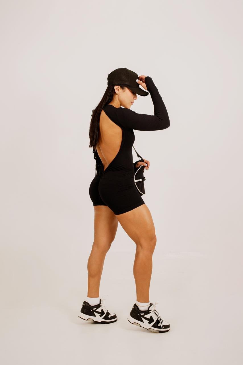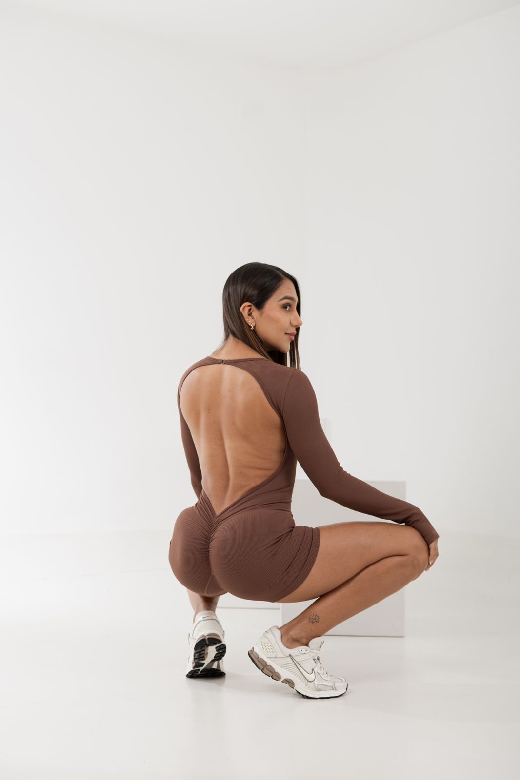 ENTERIZO CORTO MANGA LARGA CON ESCOTE ESPALDA